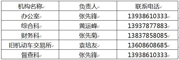 中心机关内设办公室、综合科、财务科、督查科、旧机动车交易所等5个职能科室。